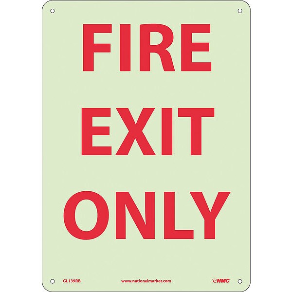 Fire Exit Only Sign, 14 in Height, 10 in Width, Glow Rigid