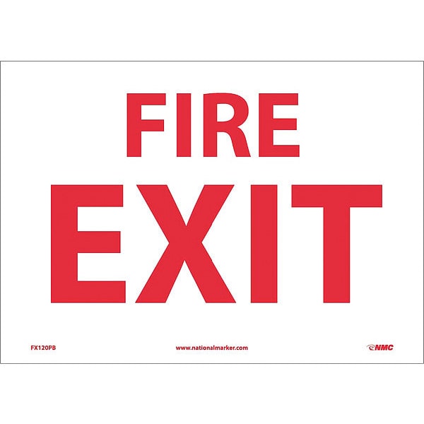 Fire Exit Sign, 10 in Height, 14 in Width, Pressure Sensitive Vinyl