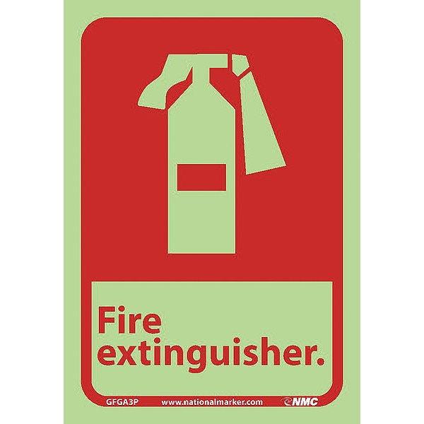 Fire Extinguisher Sign, 10 in Height, 7 in Width, Glow Polyester