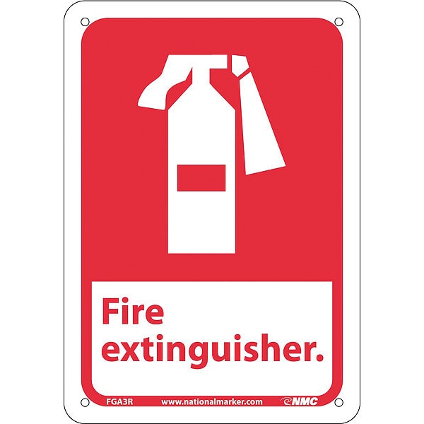 Fire Extinguisher Sign, 10 in Height, 7 in Width, Rigid Plastic