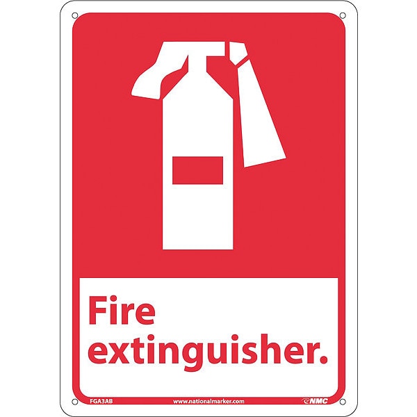 Fire Extinguisher Sign, 14 in Height, 10 in Width, Aluminum