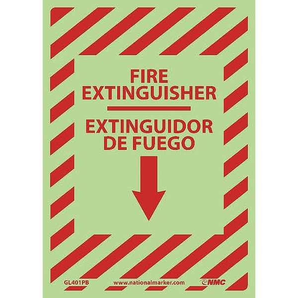 Fire Extinguisher Sign - Bilingual, 14 in Height, 10 in Width, Glow Polyester