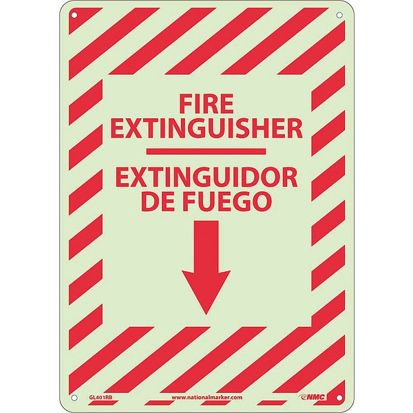 Fire Extinguisher Sign - Bilingual, 14 in Height, 10 in Width, Glow Rigid