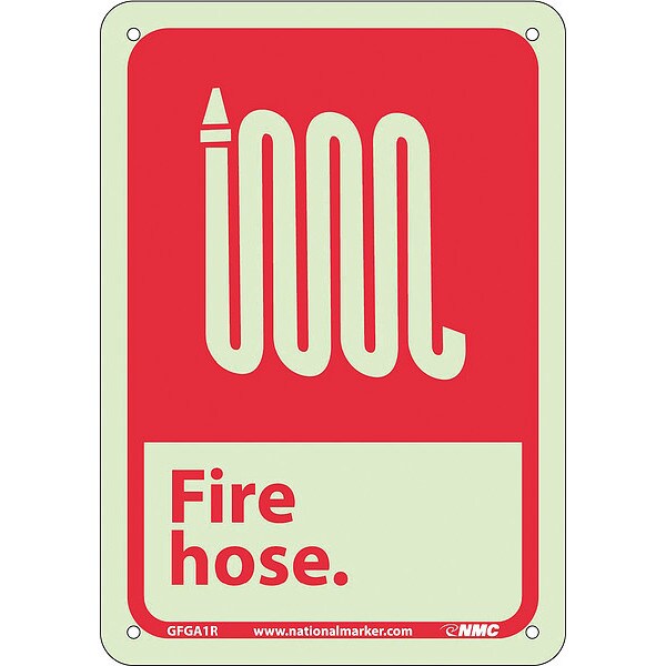 Nmc Fire Hose Sign, 10 in Height, 7 in Width, Glow Rigid GFGA1R