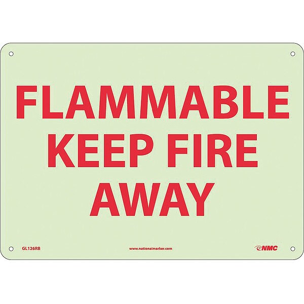 Nmc Flammable Keep Fire Away Sign, 10 in Height, Plastic, Rectangle, English GL126RB