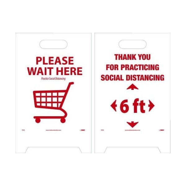 pNational Marker 19 H x 12 W in coroplast floor sign PLEASE WAIT HERE THANK YOU FOR PRACTICING SOCIAL DISTANCING 6 FTp
