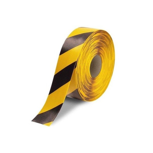 Floor Tape, PVC, Black/Yellow, 3 in W., 100 ft L., 50 mil Thickness