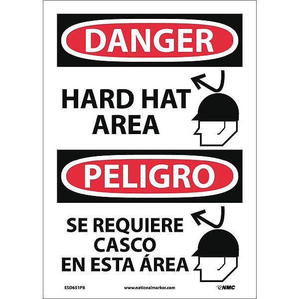 Hard Hat Area Sign - Bilingual, 14 in Height, 10 in Width, Pressure Sensitive Vinyl (Discontinued)