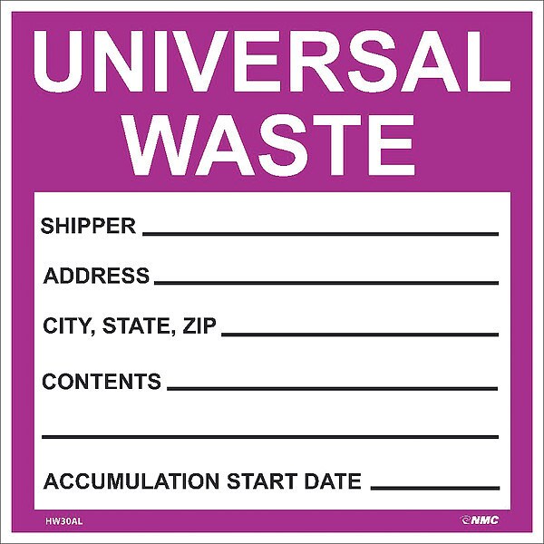 Universal Waste - Shipper__________ Address____ City,State,Zip____ Contents________ Accumulation Start Date ______