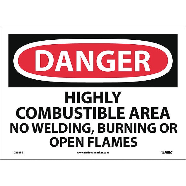 Highly Combustible Area No Welding Burni Sign, D292PB