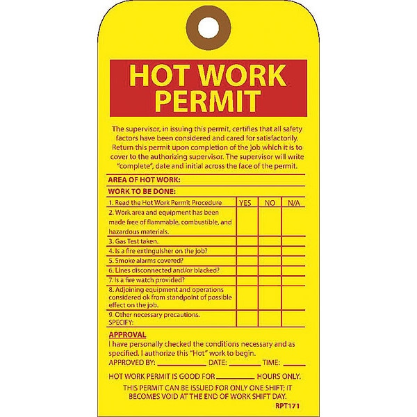 Hot Work Permit Tag,PK10, Package Quantity 10