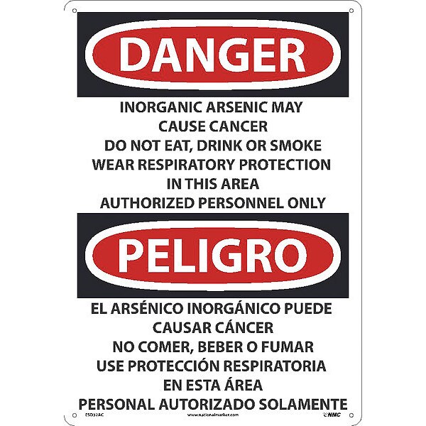 Inorganic Arsenic May Cause Cancer Sign - Bilingual, ESD32AC (Discontinued)