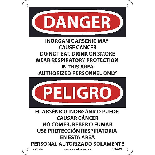 Danger Peligro Inorganic Arsenic May Cause Cancer Do Not Eat, Drink Or Smoke Wear Respiratory Protection In This Area Authorized Personnel Only (bilingual)