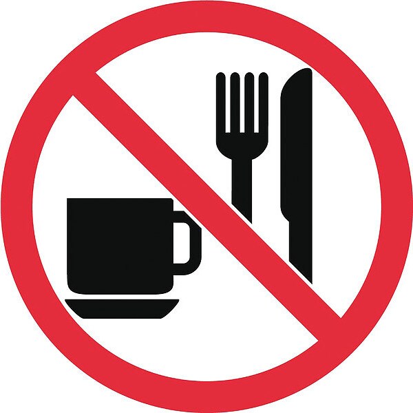 LABEL, GRAPHIC FOR NO EATING OR DRINKING, 2IN DIA, PS VINYL, Pk10 (Discontinued)