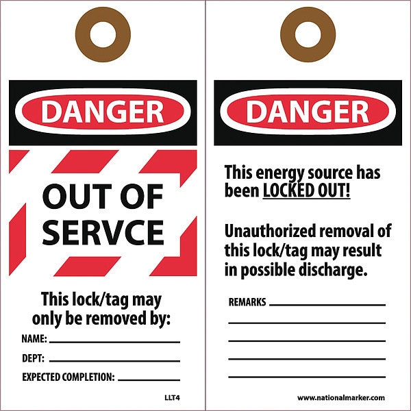 Laminated Out Of Srvice Lckout Tag,PK25