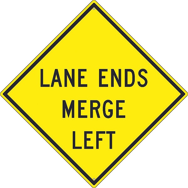Lane Ends Merge Left Sign