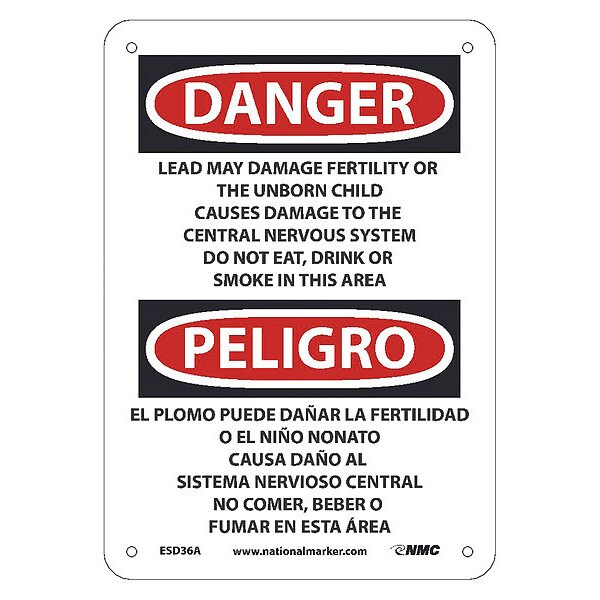 Peligro Lead May Damage Fertility Or The Unborn Child Causes Damage To The Central Nervous System Do Not Eat, Drink Or Smoke In This Area (bilingual)