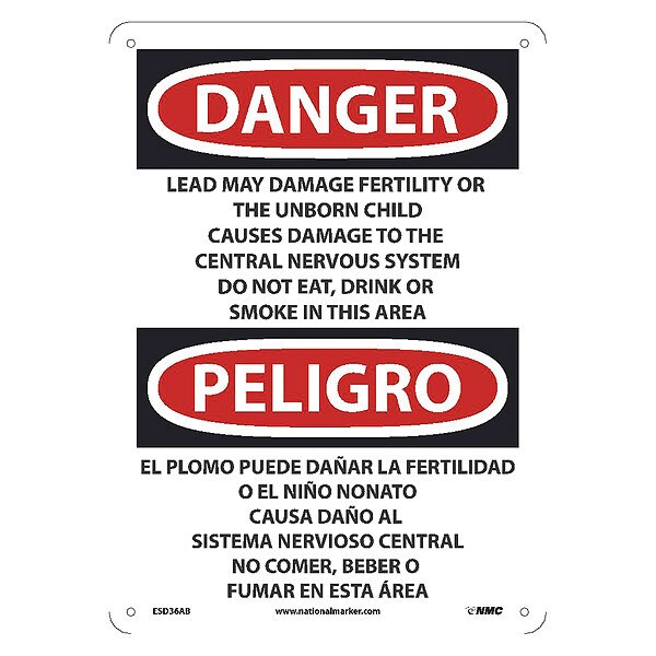 Peligro Lead May Damage Fertility Or The Unborn Child Causes Damage To The Central Nervous System Do Not Eat, Drink Or Smoke In This Area (bilingual)