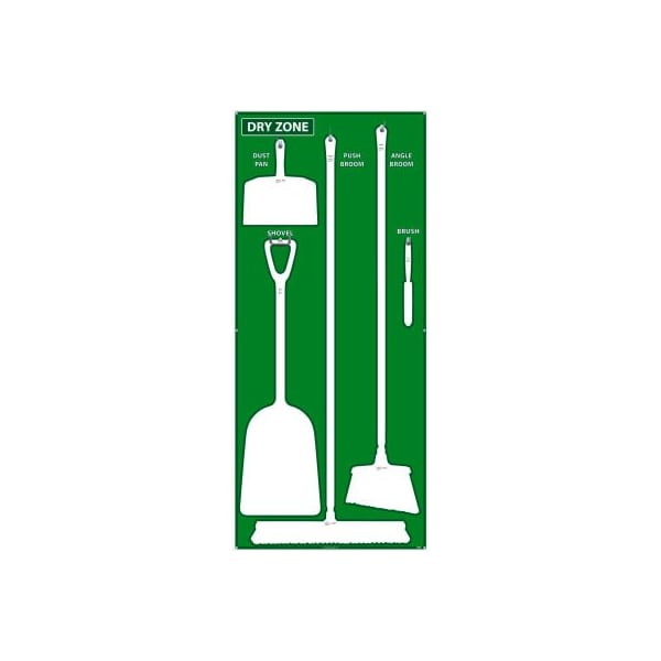 National marker dry zone shadow board, green/white,68 x 30, acp, aluminum composite panel - sb133acp many manufacturing and food processing facilities are implementing 5s shadow boards to help reduce cost and down time by keeping cleaning supplies (and other tools), in a central location, neatly stored, and always accessible. features: ideal for basic maintenance and organizational use includes shadow board and hardware for mounting tools designed for vikan brand tools (sold separately): 12' angle broom, 24' push broom with 59' handle, dust pan, bench brush, single piece shovel with 14' blade. lightweight, dual-layered aluminum with plastic core protected by sign muscle liquid laminate temperature range of -60 to 180