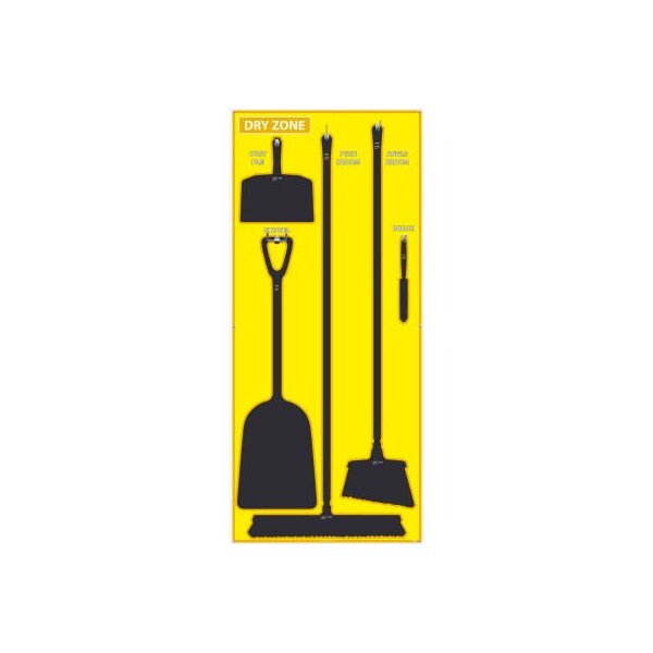 National marker dry zone shadow board, yellow/black,68 x 30, aluminum - sb140al many manufacturing and food processing facilities are implementing 5s shadow boards to help reduce cost and down time by keeping cleaning supplies (and other tools), in a central location, neatly stored, and always accessible. features: great for industrial, manufacturing applications. includes shadow board and hardware for mounting tools designed for vikan brand tools (sold separately): 12' angle broom, 24' push broom with 59' handle, dust pan, bench brush, single piece shovel with 14' blade. durable, industrial grade aluminum. protected by sign muscle liquid laminate temperature range of -40 to 250