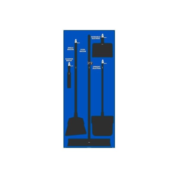 National Marker Janitorial Shadow Board, Blue on Black, Pro Series Acrylic -