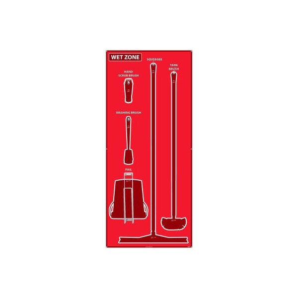 National marker wet zone shadow board, red/red,68 x 30, acp, aluminum composite panel - sb110acp many manufacturing and food processing facilities are implementing 5s shadow boards to help reduce cost and down time by keeping cleaning supplies (and other tools), in a central location, neatly stored, and always accessible. features: ideal for basic maintenance and organizational use includes shadow board and hardware for mounting tools designed for vikan brand tools (sold separately): tank brush, 24' single blade squeegee, long handle scrub brush, large hand brush, and 3 gallon bucket. lightweight, dual-layered aluminum with plastic core protected by sign muscle liquid laminate temperature range of -60 to 180