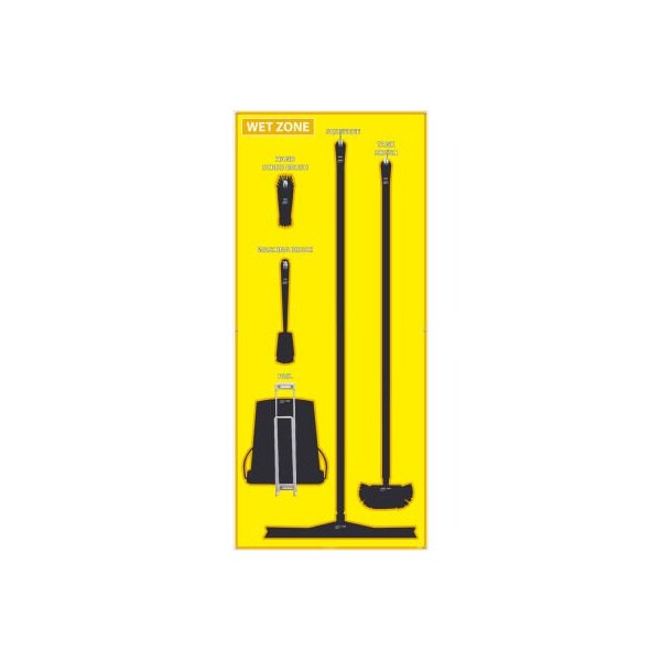 National marker wet zone shadow board, yellow/black,68 x 30, acp, aluminum composite panel- sb124acp many manufacturing and food processing facilities are implementing 5s shadow boards to help reduce cost and down time by keeping cleaning supplies (and other tools), in a central location, neatly stored, and always accessible. features: ideal for basic maintenance and organizational use includes shadow board and hardware for mounting tools designed for vikan brand tools (sold separately): tank brush, 24' single blade squeegee, long handle scrub brush, large hand brush, and 3 gallon bucket. lightweight, dual-layered aluminum with plastic core protected by sign muscle liquid laminate temperature range of -60 to 180