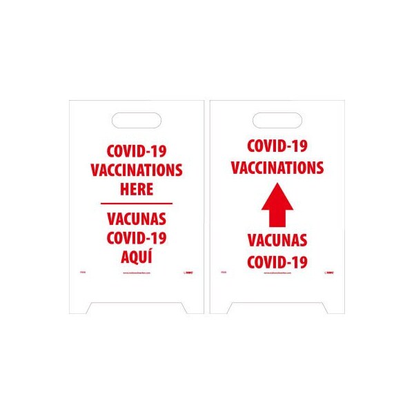 NMC COVID-19 Vaccinations Here, Double Sided Floor Sign, English/Spanish, 19 X 12
