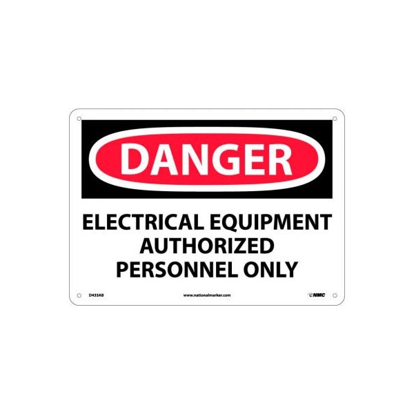 NMC D433PB OSHA Sign, Danger, Electrical Equipment Authorized Personnel, 10"x 14", Red/Black/White