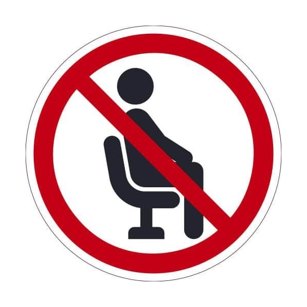 No Seating Graphic Sign Label, Pressure Sensitive Vinyl 0045, 5pk, 6 H x 6 W in