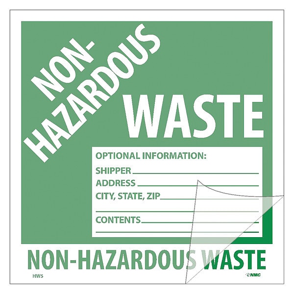 Non-Hazardous Waste Self-Lam Label,PK5, Package Quantity 5