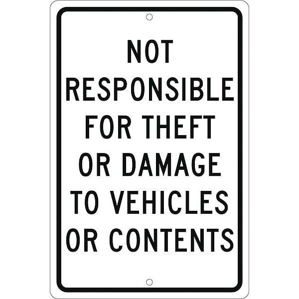 Not Responsible For Theft Or Damage To Vehicles Or Contents Sign, TM68H