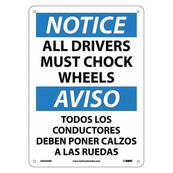 Notice All Drivers Must Chock Wheels Sign - Bilingual, ESN366RB