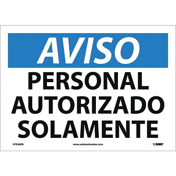 Nmc Notice Authorized Personnel Only Sign - Sign, SPN34PB SPN34PB