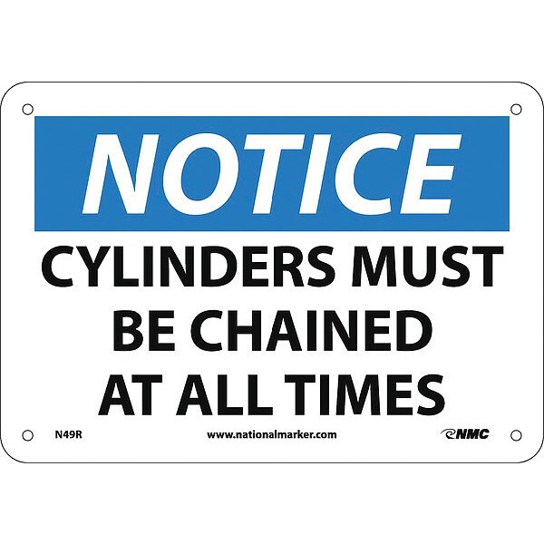 Notice Cylinders Must Be Chained At All Times Sign, N49R