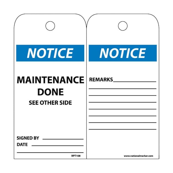Notice Maintenance Done See Other Side Tag, Pk25