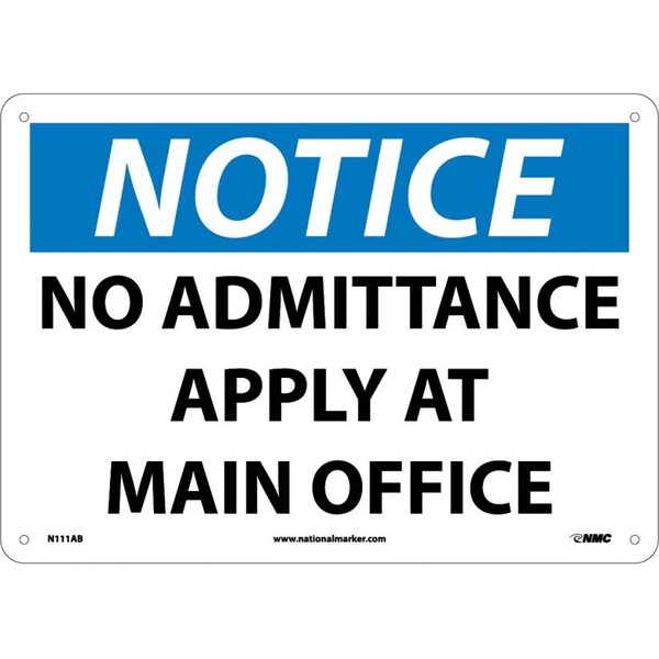 Notice No Admittance Apply At Main Office Sign, N111AB (Discontinued)