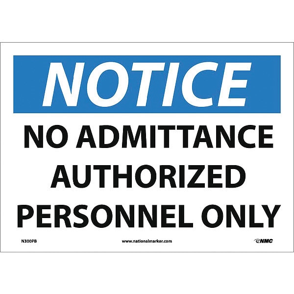 Notice, No Admittance Authorized Personnel Only, 10X14, Ps Vinyl