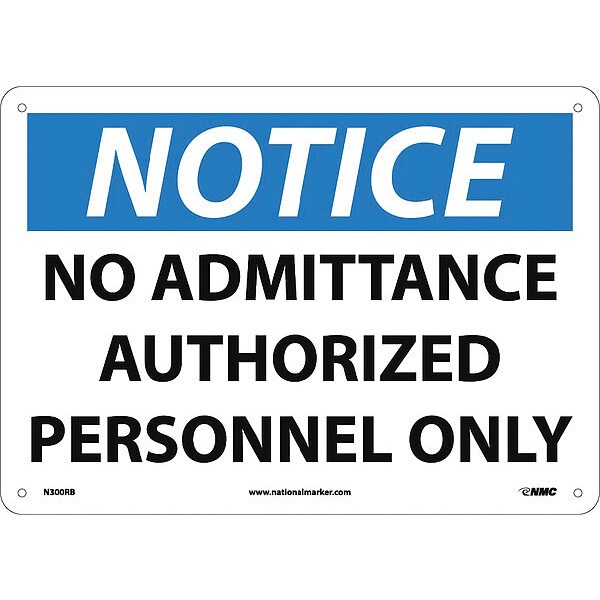 Notice, No Admittance Authorized Personnel Only, 10X14, Rigid Plastic