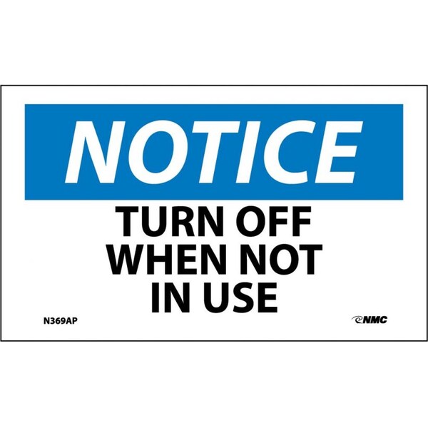 Notice Turn Off When Not In Use Label, P, Package Quantity 5