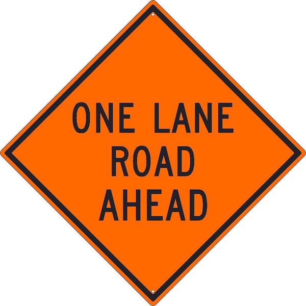 One Lane Road Ahead Sign, 30 in Height, Aluminum, Diamond