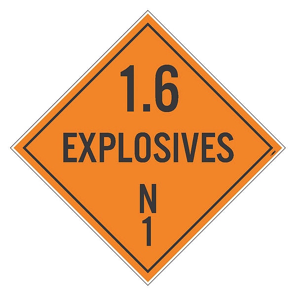 Placard Sign, N1, 1.6 Explosives, Pk100, Material: Unrippable Vinyl
