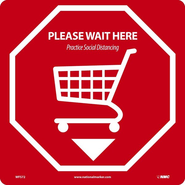 Please Wait Here Practice Social Distancing, 12X12, Pressure Sensitive Vinyl .0045