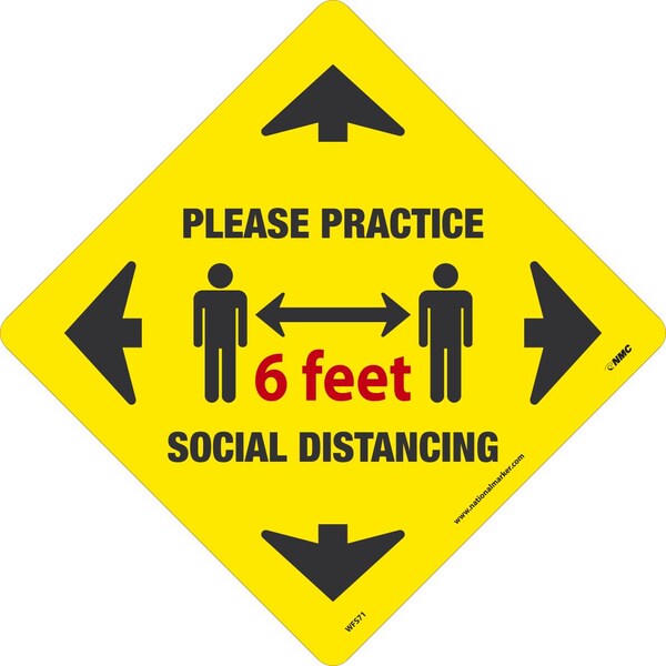Please Practice Social Distancing 6 Feet, 12X12, Pressure Sensitive Vinyl .0045