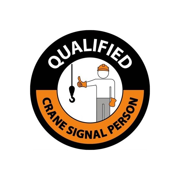 Qualified Crane Signal Person Hard Hat Label, Pk25, Material: Reflective Vinyl Sheeting