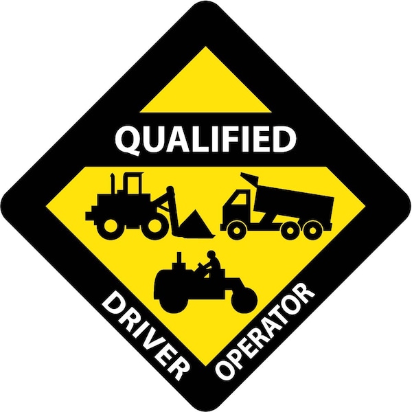 Qualified Driver Operator Hard Hat Label, Pk25, Material: Pressure Sensitive Vinyl .002