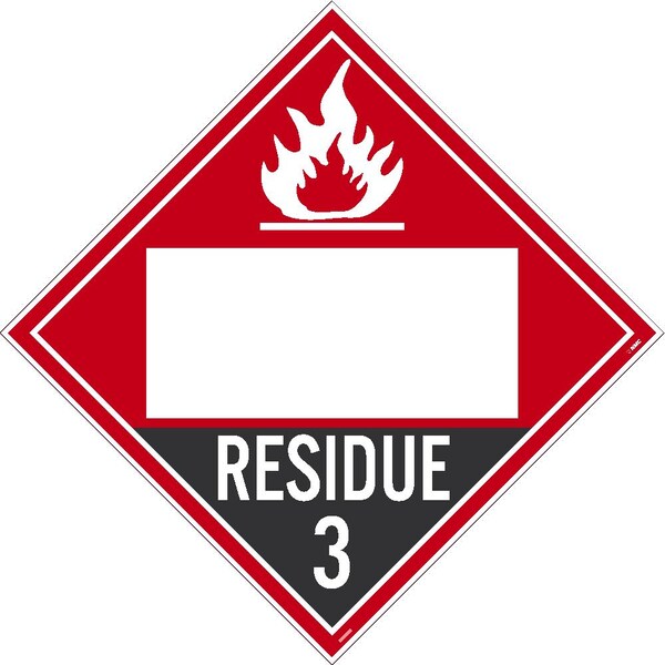 Residue 3 Flammable Liquids Blank Dot Placard Sign, Material: Adhesive Backed Vinyl (Discontinued)