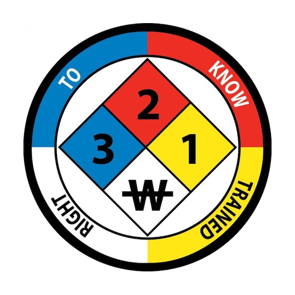 Right To Know Trained 3 2 1 W Hard Hat Emblem, Pk25