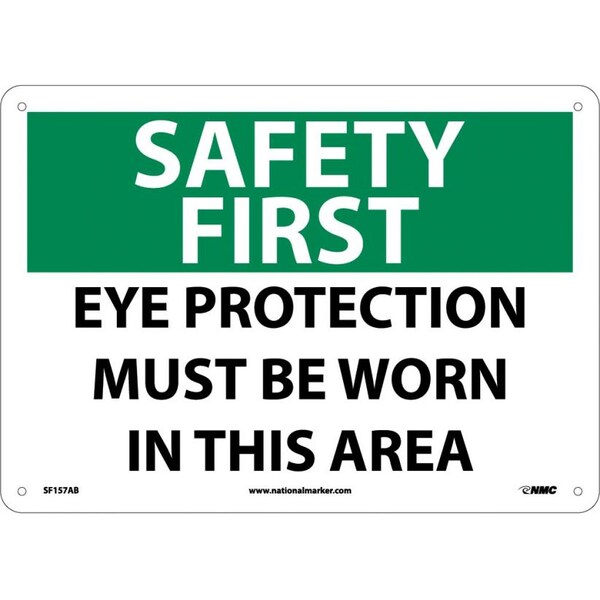 Safety First Eye Protection Must Be Worn, 10 in Height, 14 in Width, Aluminum (Discontinued)