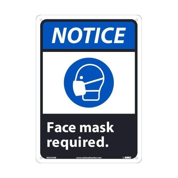 Safety Sign, NOTICE FACE MASK REQUIRED, Aluminum 040, 14 H x 10 W in